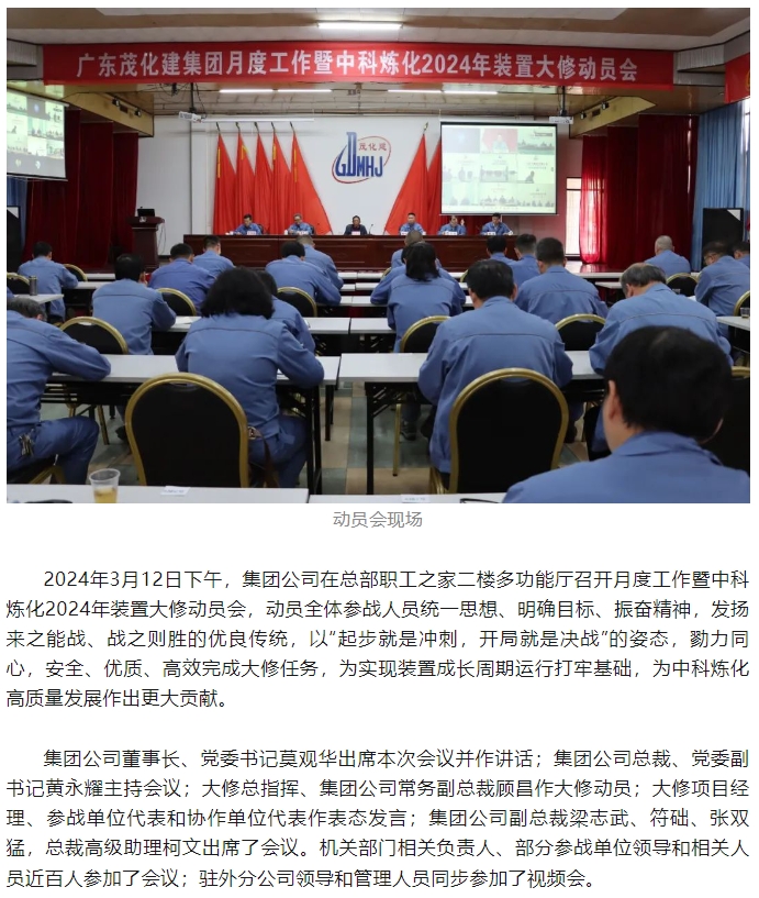 勠力同心擂響戰(zhàn)鼓 千軍萬馬出征大修——集團公司2024年中科煉化裝置大修動