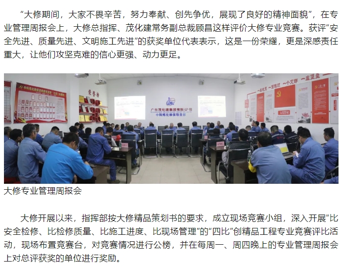 緊盯目標決戰(zhàn) 奮力沖刺掃尾——走馬2024年中科煉化裝置大修改造大會戰(zhàn)現場