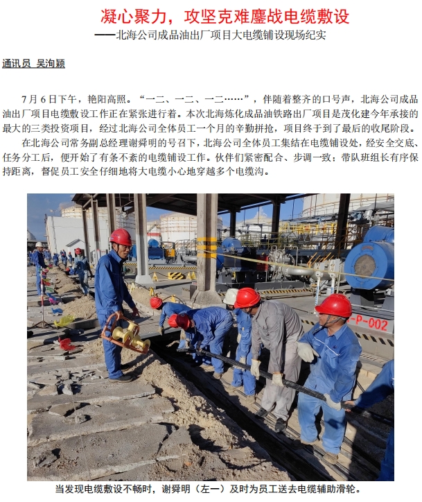 北海公司成品油出廠項目大電纜鋪設(shè)現(xiàn)場紀(jì)實