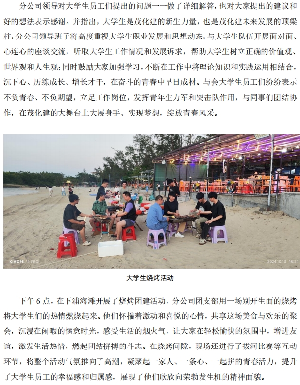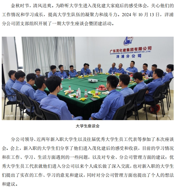 洋浦分公司團(tuán)支部組織大學(xué)生座談會暨團(tuán)建活動(dòng)