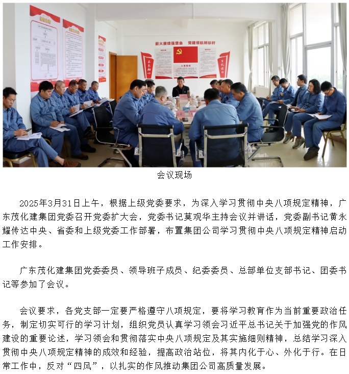 廣東茂化建集團(tuán)黨委召開貫徹中央八項規(guī)定精神學(xué)習(xí)教育部署啟動會