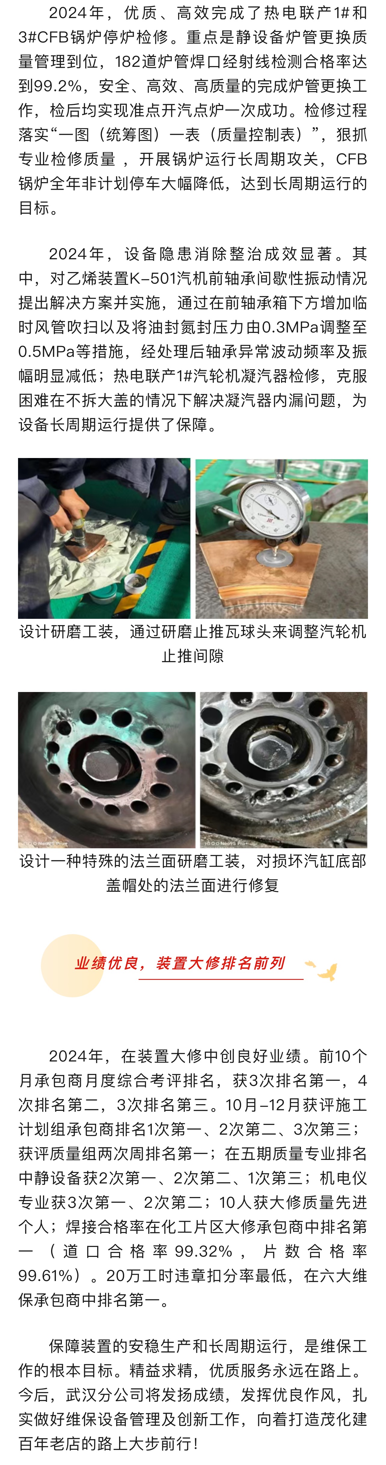 雙喜臨門 | 武漢分公司榮獲2024年度中韓石化“安全管理先進(jìn)承包商”、“設(shè)備管