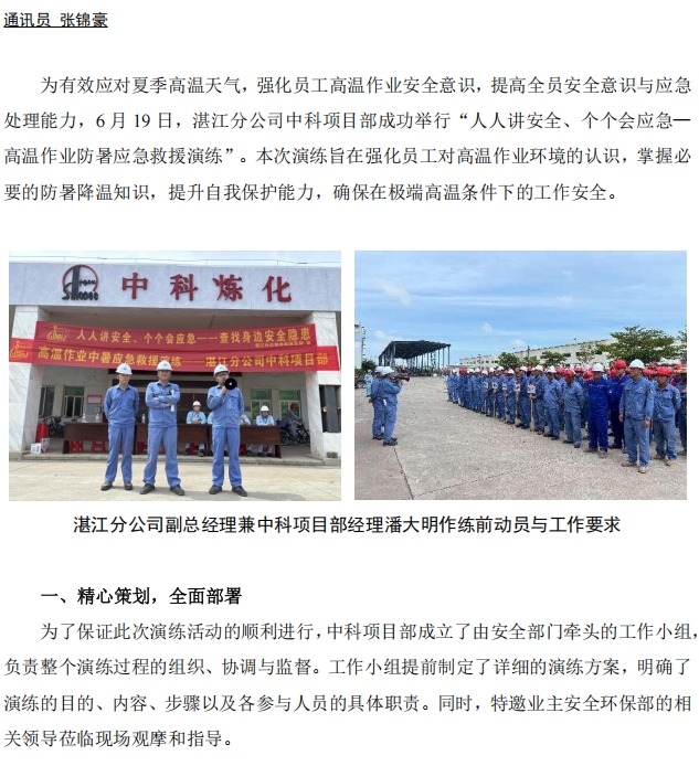 湛江分公司中科項目部開展高溫作業(yè)中暑應急救援演練