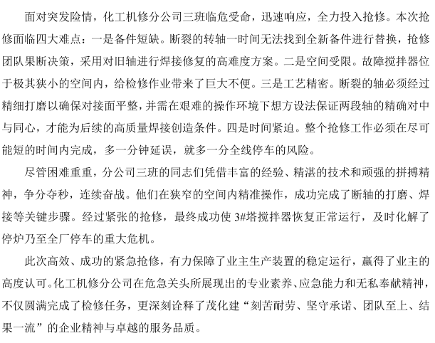 聞令而動!化工機修分公司高效搶修守護業(yè)主生產(chǎn)生命線