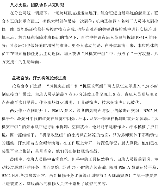 煉油機修分公司重油芳烴部 B202、P861A 搶修紀實