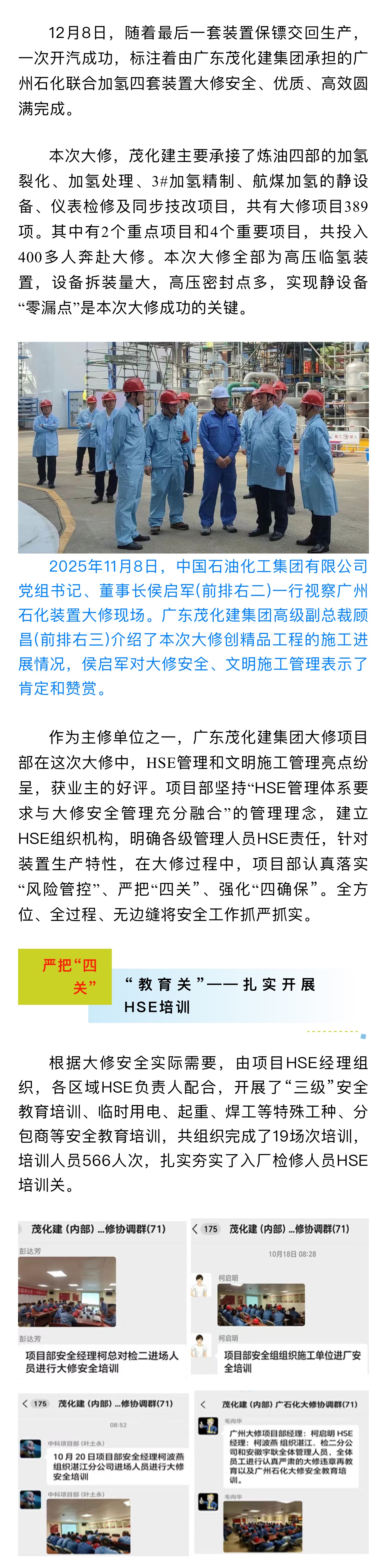 嚴(yán)把“四關(guān)” 強(qiáng)化“四確保” | 廣東茂化建集團(tuán)圓滿完成廣州石化大修