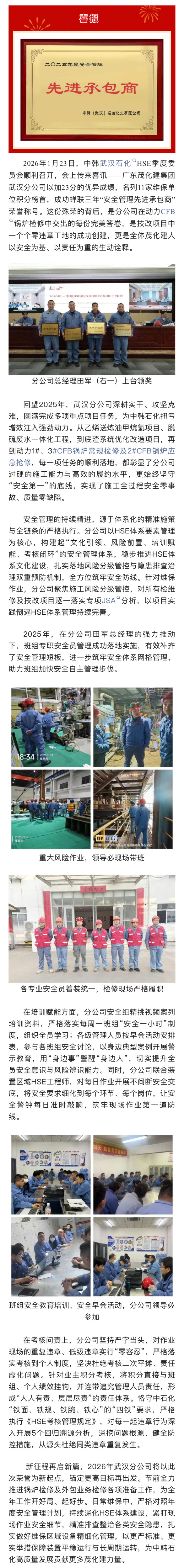 喜報 | 榮獲中韓(武漢)石化"2025年度安全管理先進(jìn)承包商”稱號